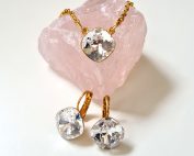 Square Crystal Earrings & 9ct Gold Necklace Jewellery Set