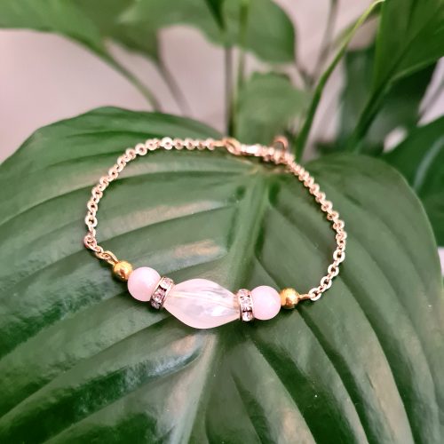 Rose Quartz Gemstone and Gold-Plated Bracelet – NEW