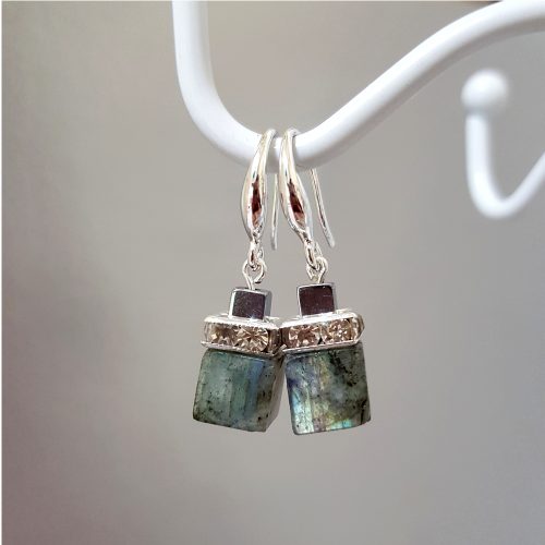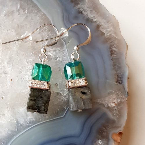 Labradorite & Austrian Crystal Cube Silver Drop Earring’s