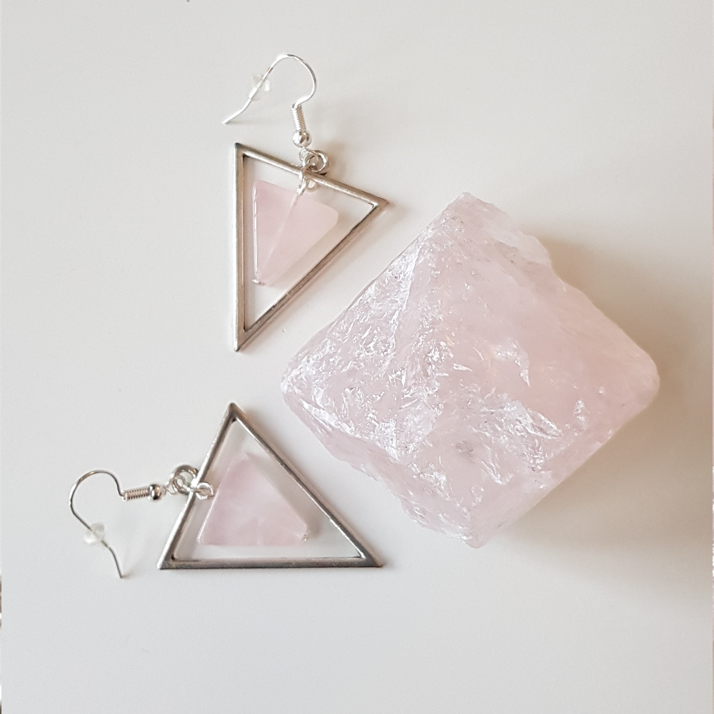 I currently have Rose Quartz, Amethyst and Aventurine geometric earrings in stock, all the findings are either silver plate and 925 sterling silver.