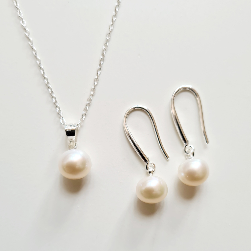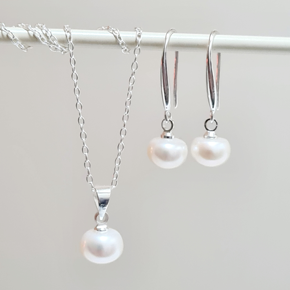 Freshwater Pearl and Sterling Silver duo, an exquisite jewellery set for a special occasion.