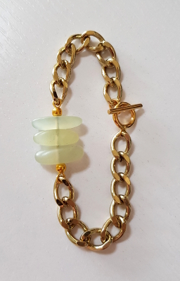 Pale Aventurine Gemstones & Gold Chain Statement Bracelet