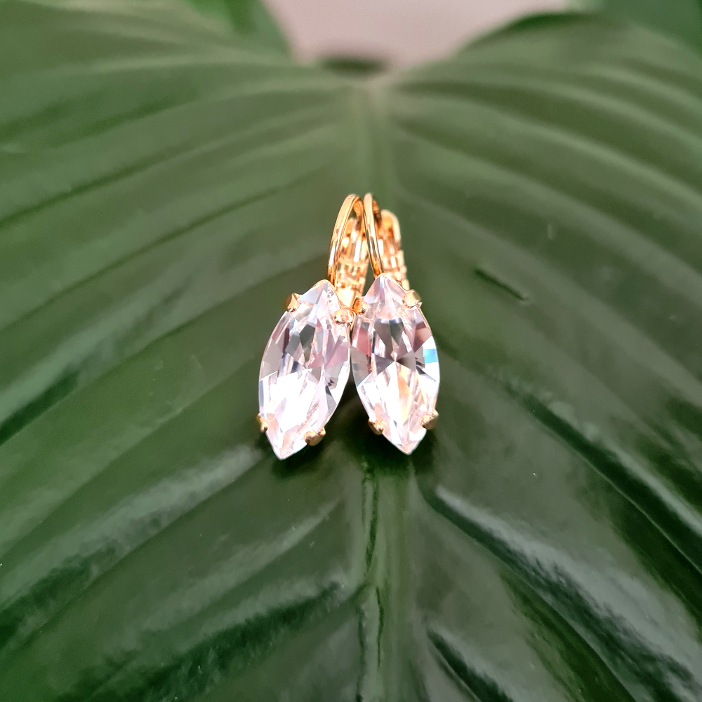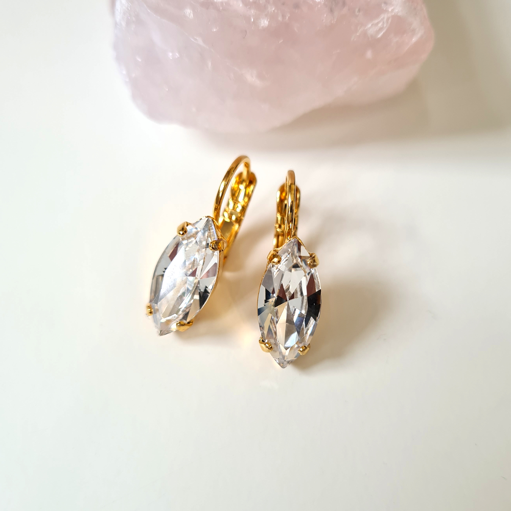 Preciosa Crystal Oval Elements & Gold Lever Back Earrings
