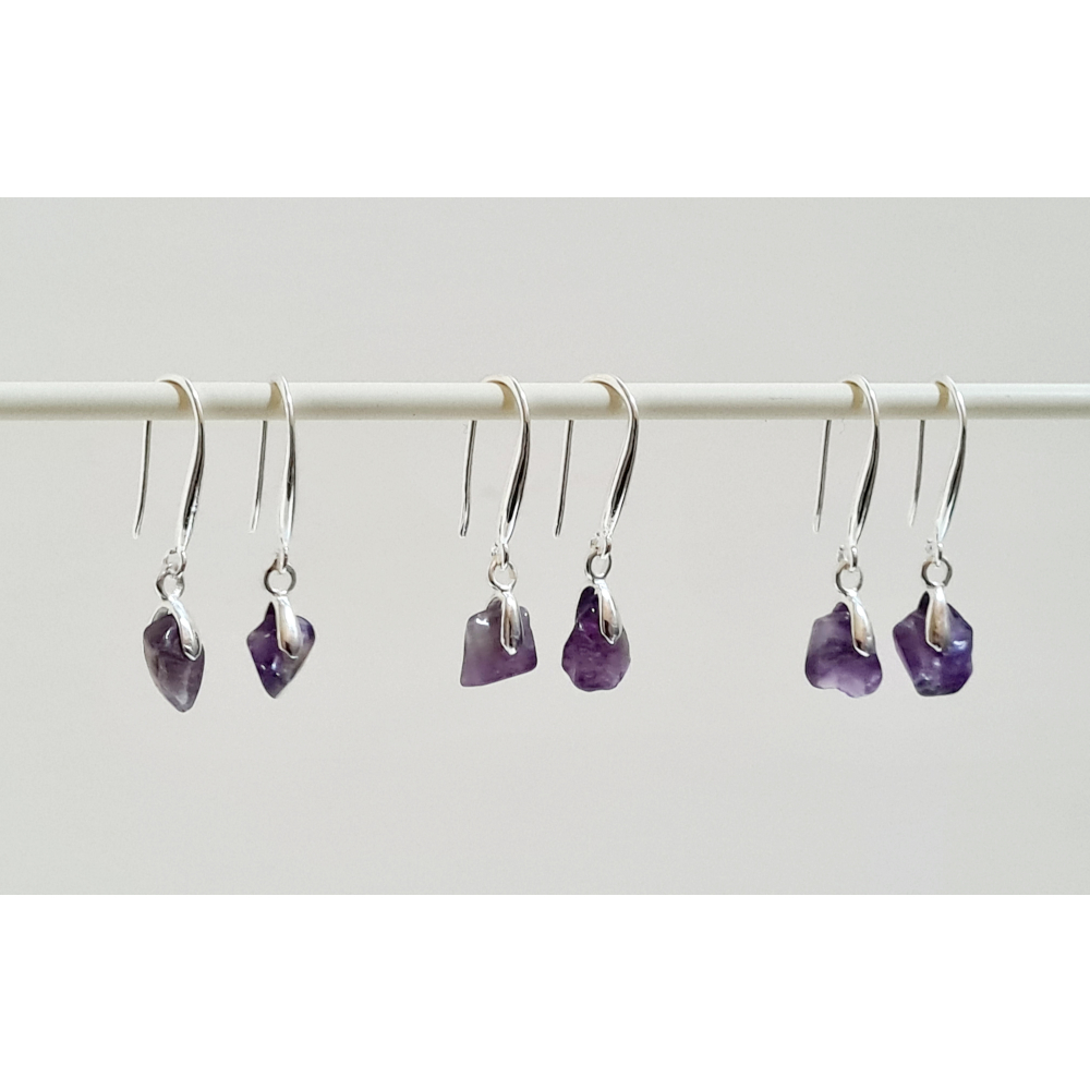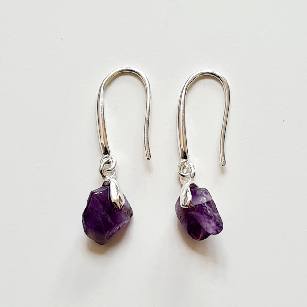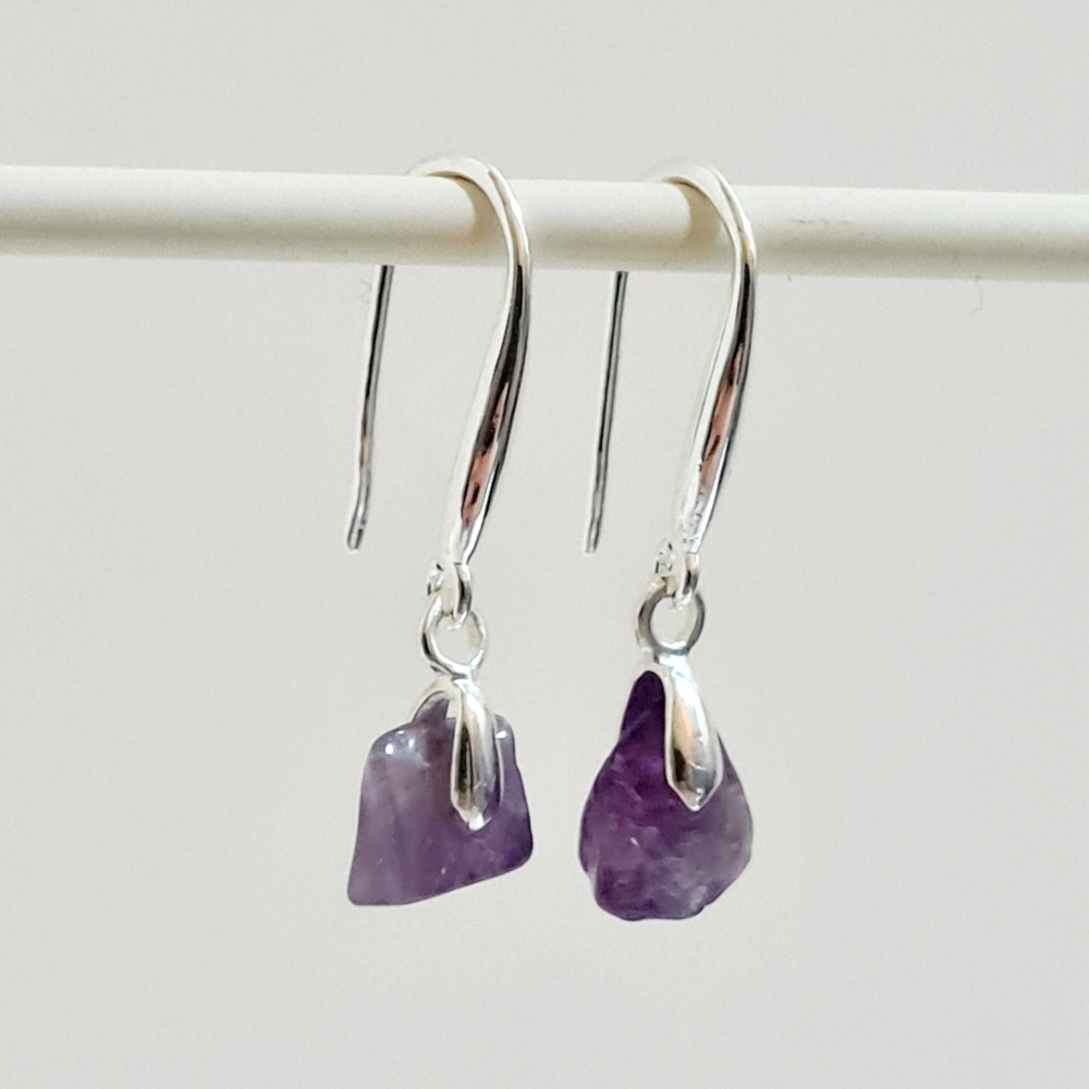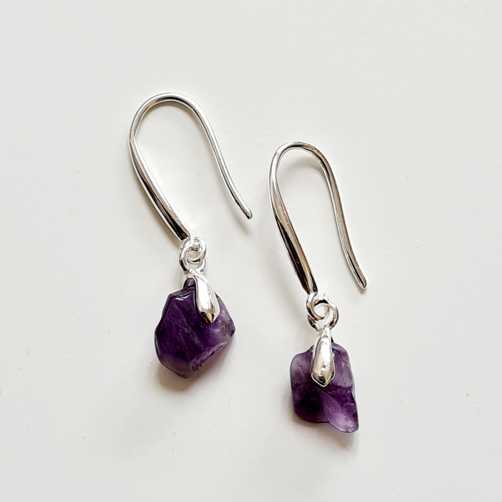 Tiny Amethyst Raw Crystals & Sterling Silver Earrings.