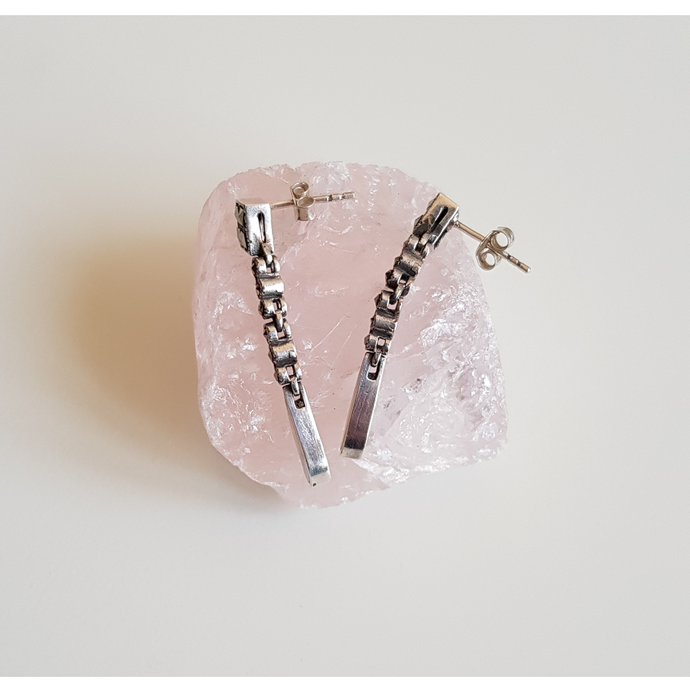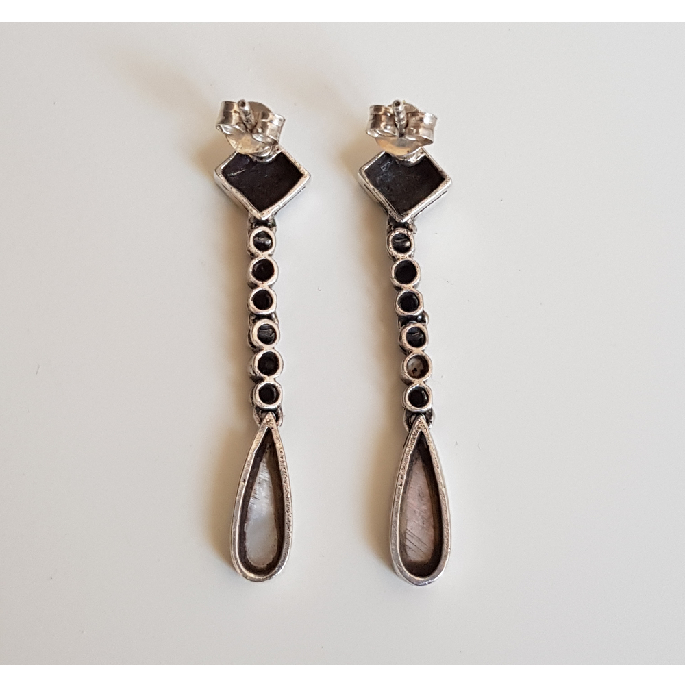 With a silver cube outer and x4 marcasite stones to the inner, the drop of the earrings are made up of x6 tiny circular marcasite stones with a teardrop mother of pearl also encase in silver.